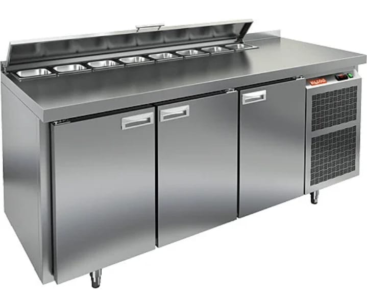 используется на предприятиях общественного питания и торговли для хранения и обработки ингредиентов, используемых для приготовления пиццы, салатов и других блюд, а также для охлаждения и кратковременного хранения скоропортящихся продуктов и напитков. Модель совмещает в себе рабочую поверхность и охлаждаемый объем, что значительно упрощает работу повара, так как все необходимые компоненты всегда находятся под рукой. Корпус и столешница выполнены из нержавеющей стали.