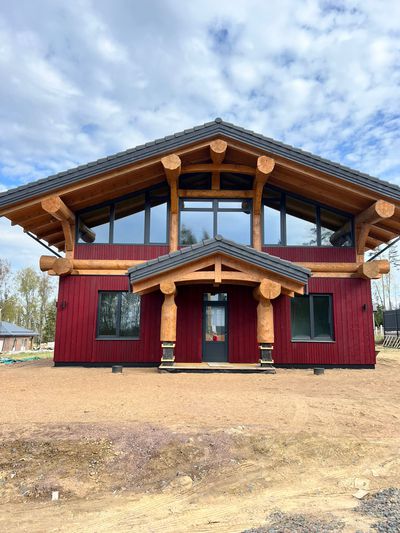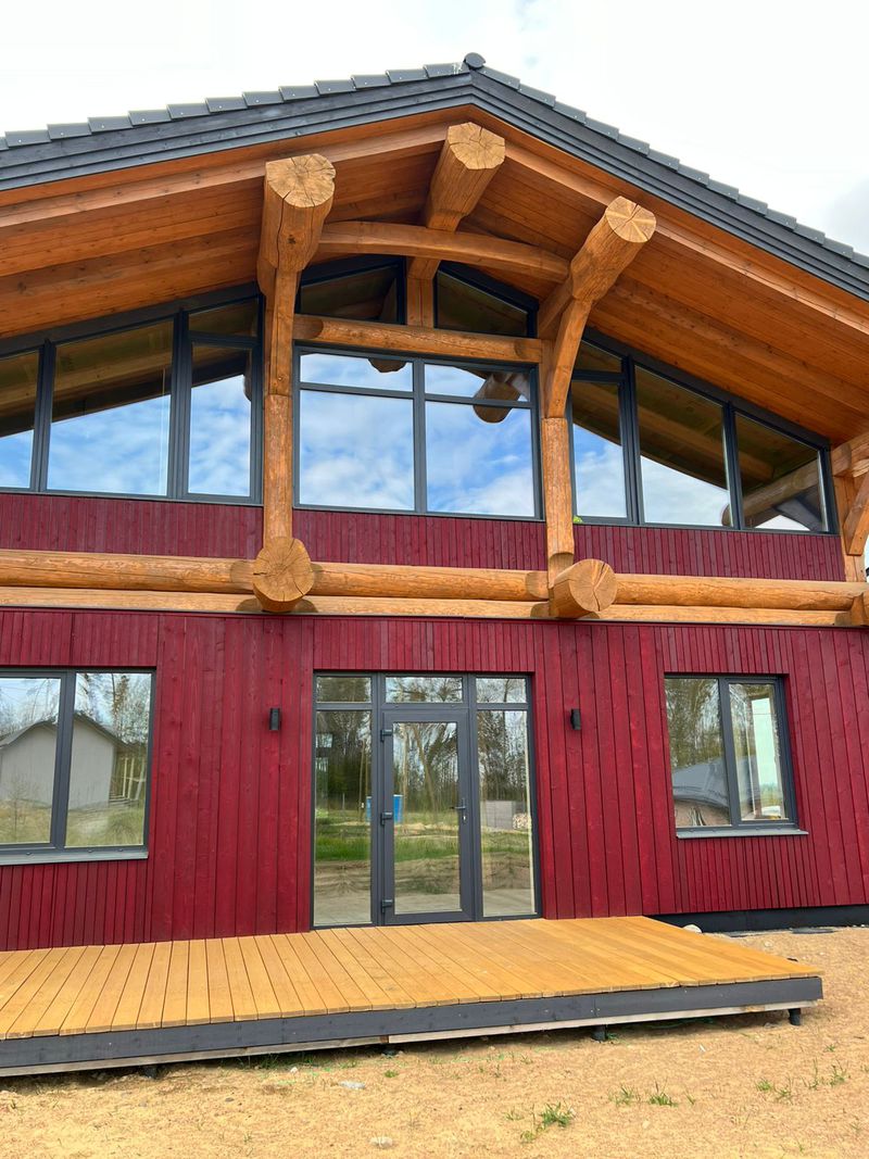 2 этаж собран по каркасно-бревенчатой технологии «Post&Beam».